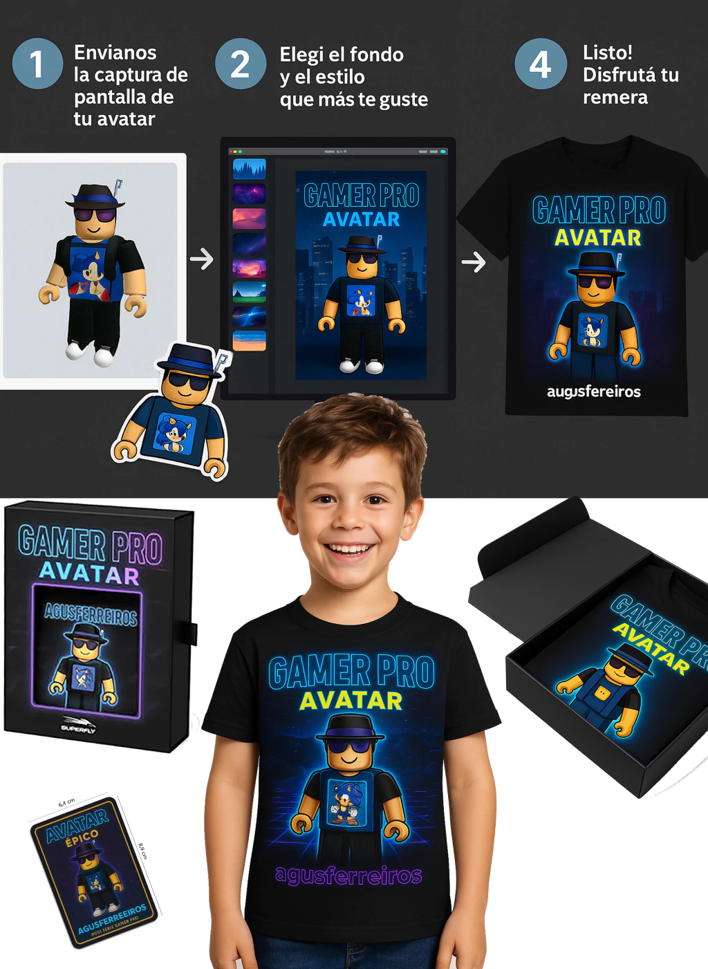 🚀 Sumergite en el mundo de los videojuegos con una remera única, creada con su propio avatar y un diseño que va a hacer que todos quieran tener la suya. ¡Personalizada, coleccionable, y de calidad premium!